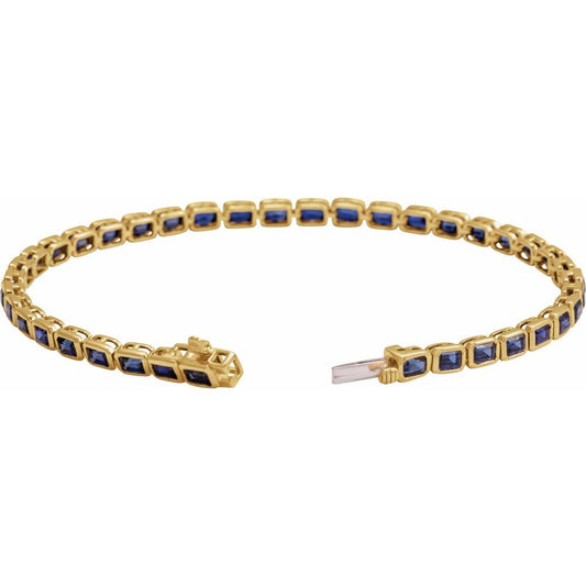 14K Yellow Lab-Grown Blue Sapphire Line 7" Bracelet