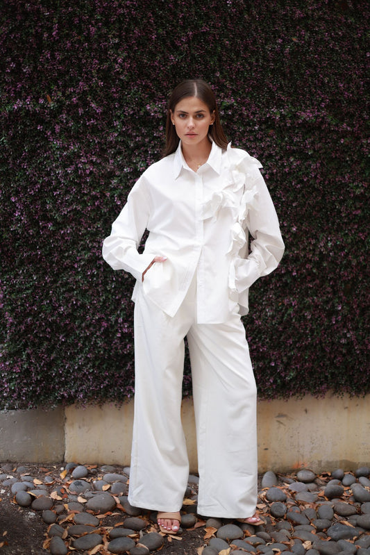 3D RIBBON FLORAL APPLIQUE TAILORED SHIRT