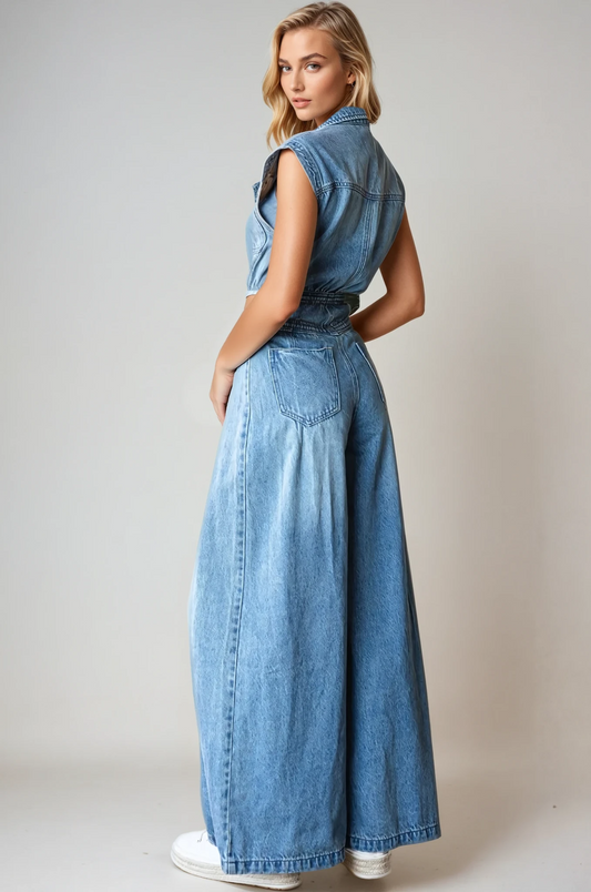 DENIM SLEEVELESS JUMPSUIT