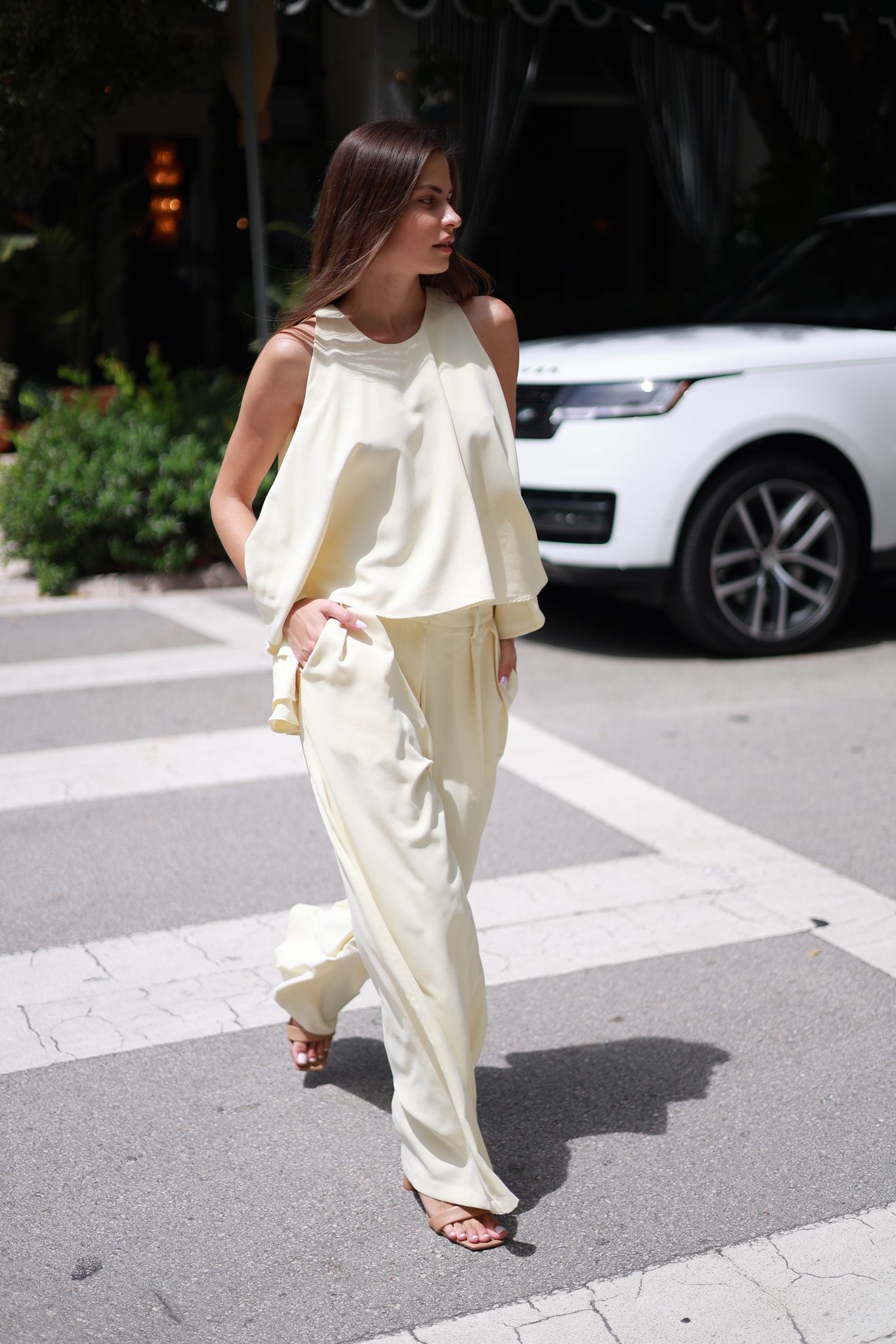 Solid color pant set